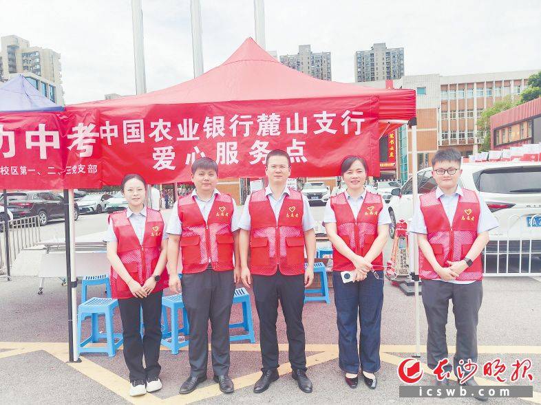 这样的温情场景,在中考期间同样上演。农行长沙麓山支行牵头组建志愿服务团队,携手湖南师大附中博才实验中学,精心组织了“爱心”志愿活动。中考首日,农行长沙麓山支行的志愿者们早早地在两个校区考场外搭起“爱心站”,整齐摆放文具、纸巾、扇子、矿泉水等防暑物资。他们以饱满的热情,为考生及候考家长免费送上饮用水、考试用品,用温暖的话语为考生加油鼓劲,舒缓紧张情绪。